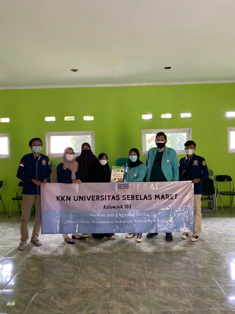 Penyerahan buku hasil donasi telah dilaksanakan pada tanggal 28 Agustus 2021 di Balai Desa Cikeas, Kecamatan Sukaraja, Kabupaten Bogor, Jawa Barat. Sebanyak 54 buku telah diserahkan dari kelompok 103 KKN UNS dan Karang Taruna Desa Cikeas kepada perangkat desa Cikeas. Perangkat desa menyambut baik dengan adanya pengadaan taman baca ini. Diharapkan dengan adanya taman baca ini dapat menumbuhkan generasi gemar membaca khususnya anak-anak dan remaja, serta mencerdaskan masyarakat desa Cikeas.